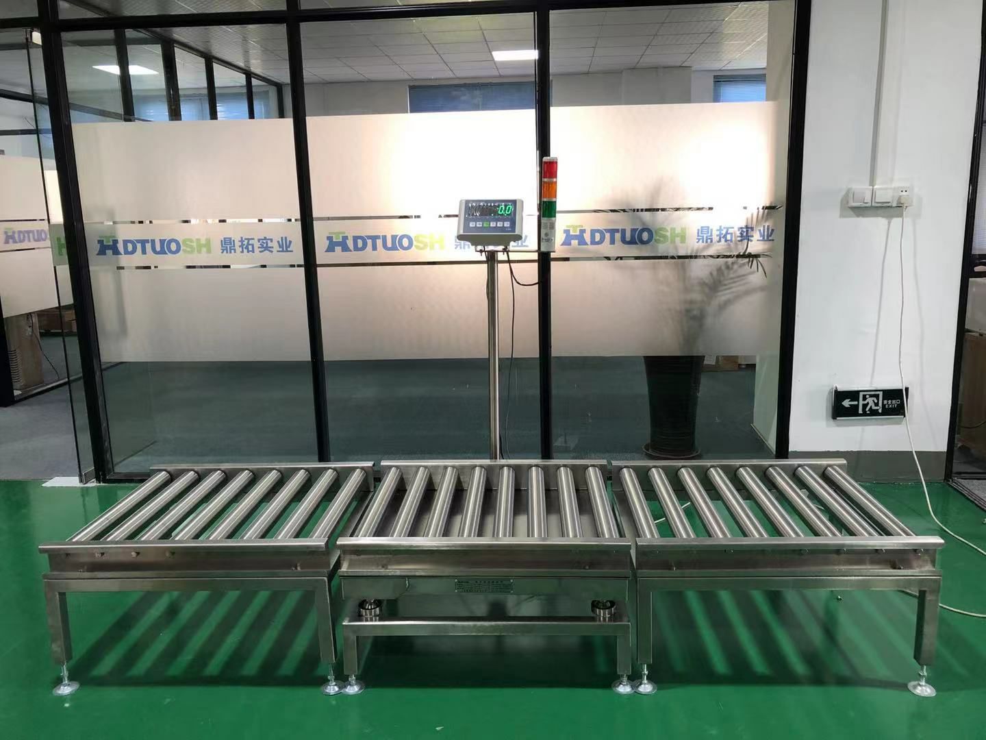 流水线动力滚筒秤材料可分为 碳钢和304不锈钢村质。仪表可选配打印数据功能。配232/485通讯接口对接电脑保存数据储存无 误,方便管理。