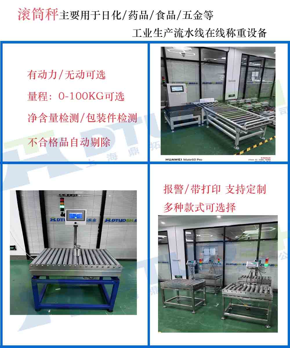工业用定量输送报警滚筒台秤主要由滚筒输送系统、称重系统、控制系统和报警系统组成。