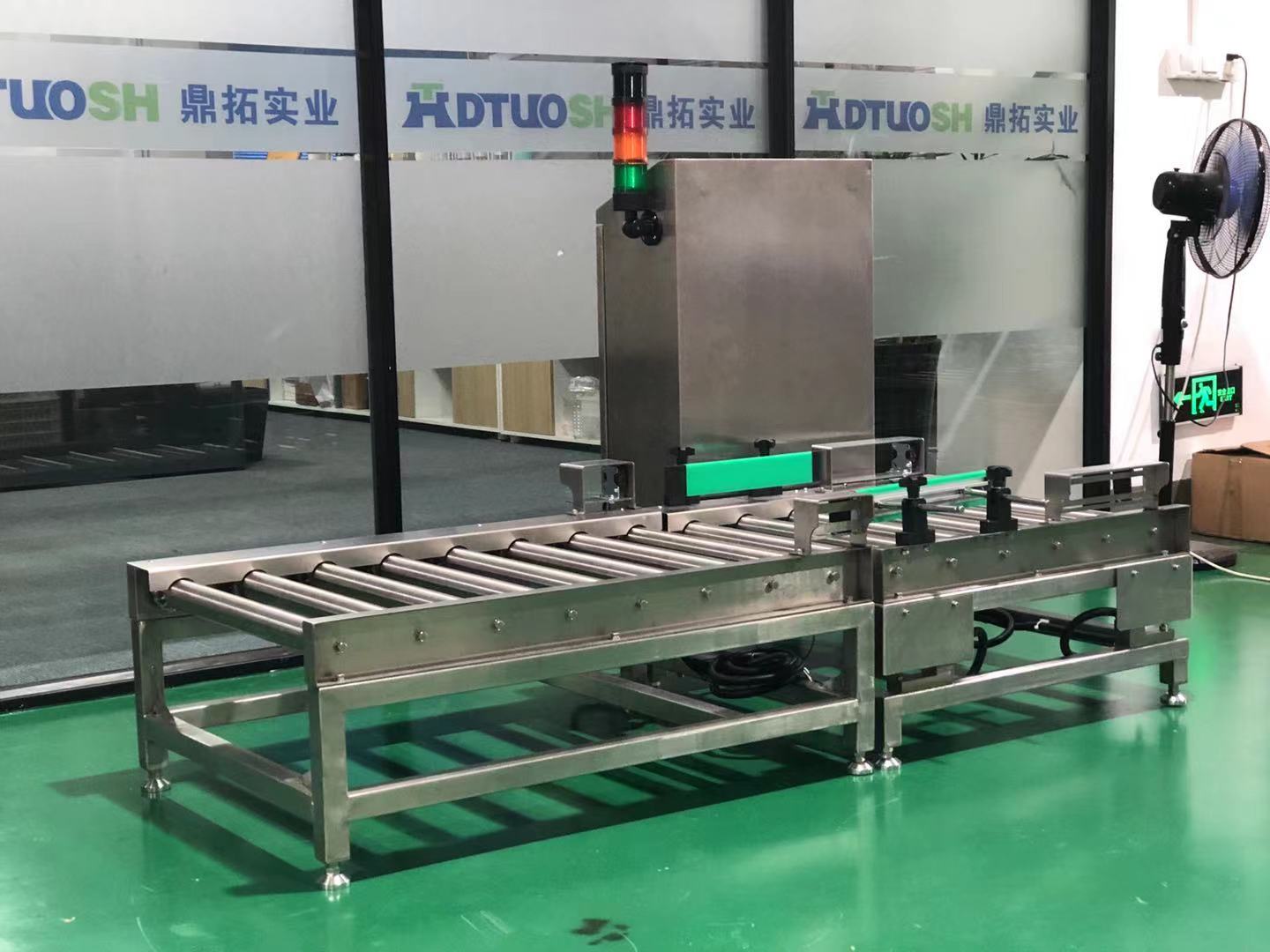 滚筒输送检重电子秤利用滚筒的输送方式,达到省时省力的效果,动力电机带动,自动输送称重、动称精度高、反应灵敏、输送平稳。